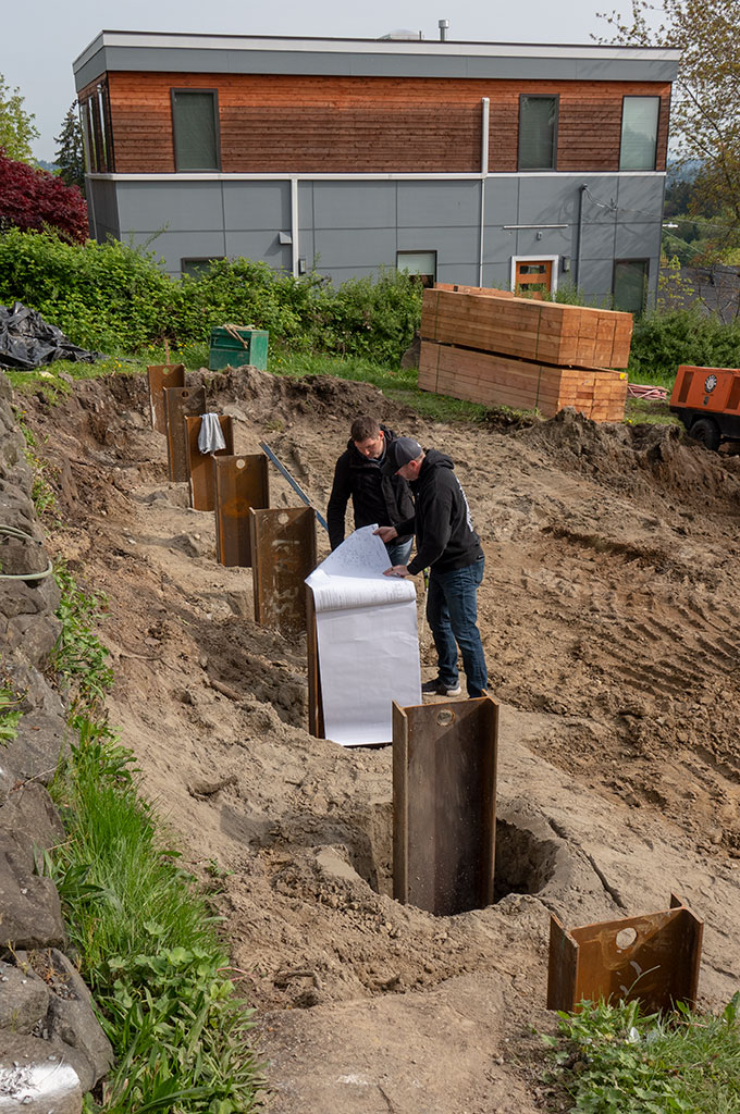 Today all the temporary retaining wall dead soldiers were installed. I added the site plan for the lot. Click the “Download” button below the image to download the full size image file.