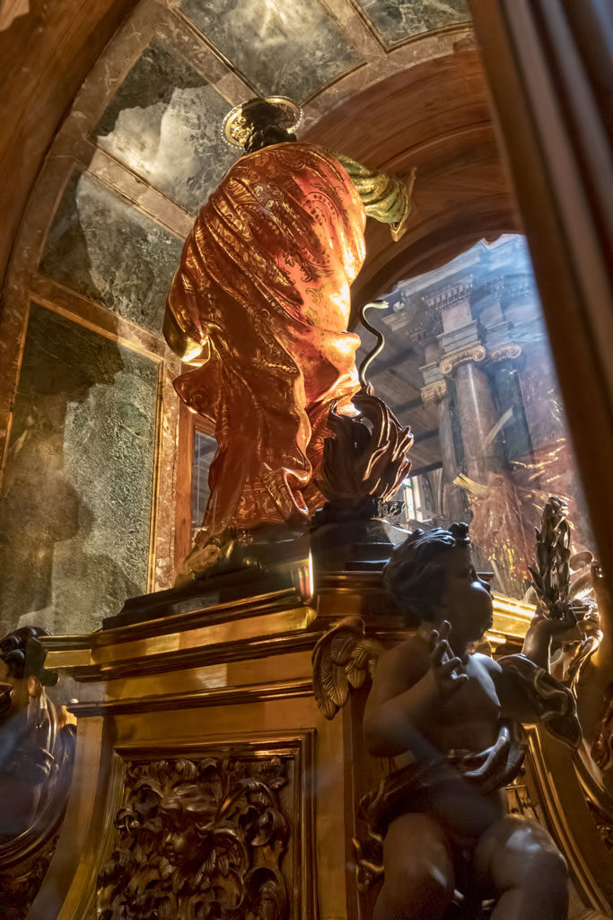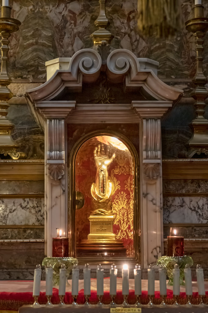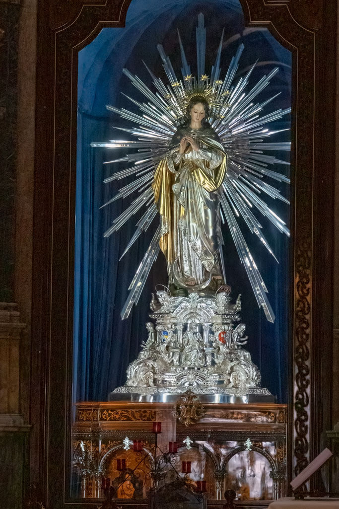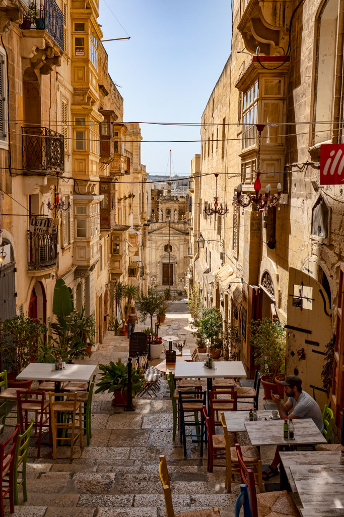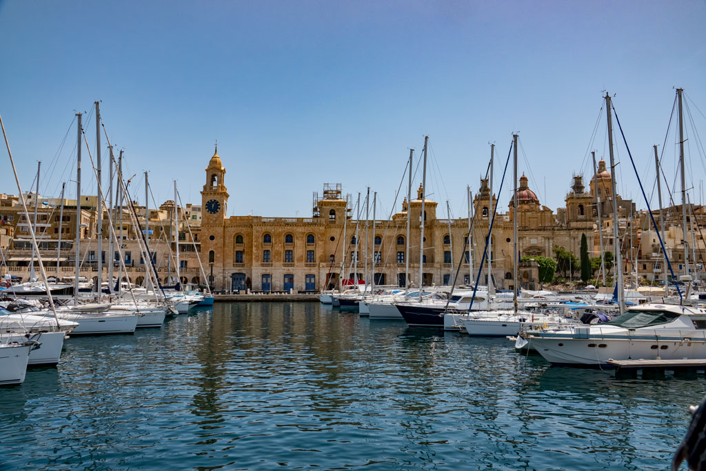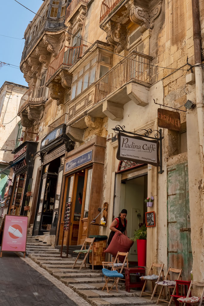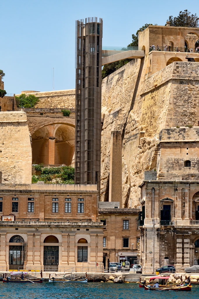 This was ‘wander about Valletta’ day. Our first stop was the Church of St. Paul’s Shipwreck. It has an ornate Baroque interior and claims to possess the wrist bone of St Paul and half of the column on which he was beheaded in Rome. For a change of pace, we took the 3-Cities ferry to Birgu. To get to the ferry dock, we took the 58-meter elevator from the Upper Barrack Gardens. There is no charge for taking the elevator down. There is a charge for taking the elevator back up. The senior rate for the ferry AND elevator is only EUR 0.90. The elevator alone is normally EUR 1.0. While waiting for the ferry, we enjoyed the waterfront scenes. At Birgu, we took a short walk around. Birgu is known for its steep, narrow streets and lots of stairs. We visited the Immaculate Conception Church. It was built in 1637, and narrowly escaped total destruction in WWII. When we were there, several men were doing tag team prayers using a microphone. With the praying, we tried to be discrete and did not do our normal look all around the interior.