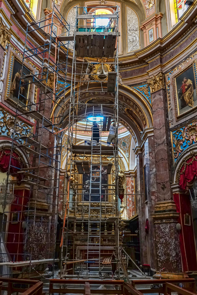 The cathedral is said to be built on the site of the villa belonging to Publius, the Roman governor of Malta who welcomed St Paul in AD 60. The original Norman church was destroyed by an earthquake, and the restrained baroque edifice you see today was built between 1697 and 1702 by Lorenzo Gafa, who was influenced by the Italian master Borromini. Note the fire and serpent motifs atop the twin bell towers, symbolising the saint’s first miracle in Malta. Echoing St John’s Co-Cathedral in Valletta, the floor of St Paul’s is covered in the polychrome marble tombstones of Maltese nobles and important clergymen, while the vault is painted with scenes from the life of St Paul. The altar painting, The Conversion of St Paul by Mattia Preti, survived the earthquake; so too did the beautifully carved oak doors to the sacristy on the north side, and the apse above the altar, featuring the fresco St Paul’s Shipwreck.
