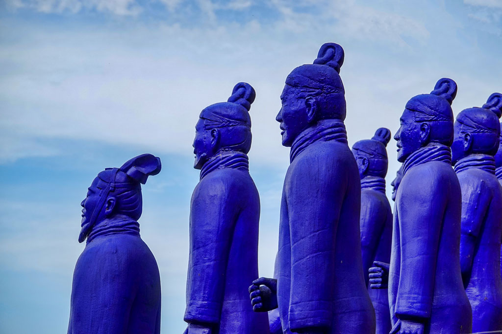 - Large Chinese statues including a number of life size blue terracotta warriers