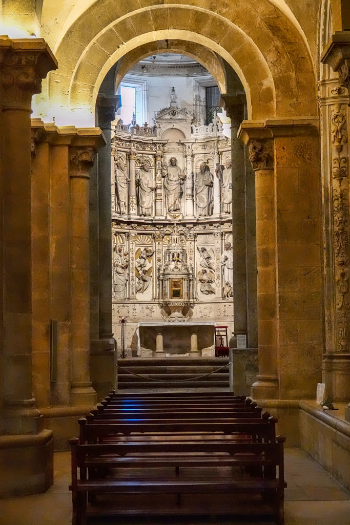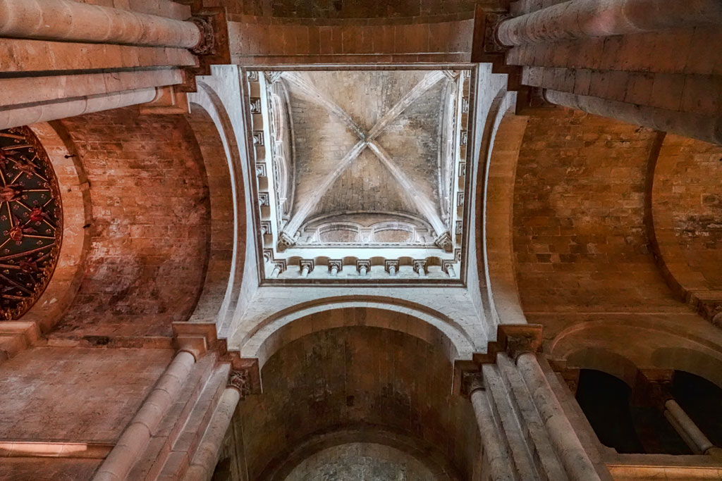 Same old story: Christians build a church on a pre-Christian holy spot (Visigoths in sixth century), Moors destroy the church and build a mosque (eighth century), then Christians push out the Moors (1064), tear down their mosque, and build another church (consecrated in 1184).
