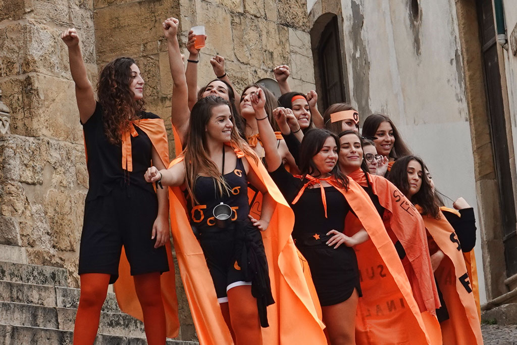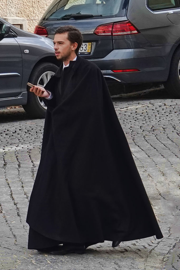 The hotel included a breakfast buffet. We joined the crowd for an early breakfast and walked, up hill, to the University of Coimbra. The hotel desk told us that university classes start tomorrow and today was student parade day (e.g. drink a lot, dress up in costumes, wear student cloaks, push shopping carts, cheers) through town. The student parade started at 9:00 AM and ended at TBD. There are two student parades each year. I assume the day before each semester.