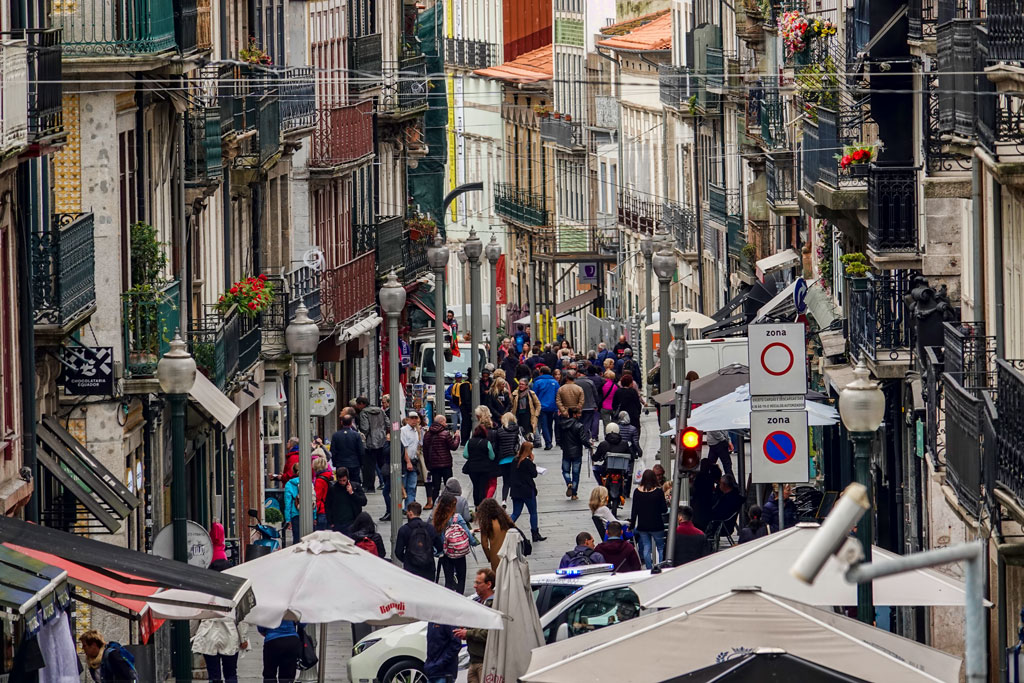 This traffic-free street is lined with iron railings, vivid azulejos, outdoor café tables, and enticing shops selling jewelry, antiques, chocolates, and other temptations. A decade ago, this was a deserted no-man’s-land; today, it’s a touristy main drag—and a great example of how Porto is blossoming all over again. And yet, some funky graffiti (a Porto specialty) and ragtag house fronts still survive, as a reminder that Porto is the result of a complex and authentic history. Enjoy this strip for a few blocks downhill.