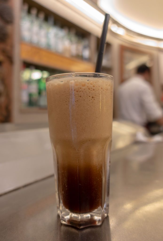 Once the real Roman heat hits in the summer, the last thing I want is hot coffee. Don’t get me wrong. I still need my caffeine more than ever. But the hot part—and even the milk part—is just too much when the thermometer nears 100°F. My go-to treat is of course a granita di caffè. But it is a treat; more of a dessert than a post-meal pick-me-up. So my daily post-lunch hit becomes a caffè shakerato. I’m not sure when this drink started turning up in Italian bars. I suspect it migrated from Greece, where Nescafé is added to ice and water and then shaken to create a luscious and sweet version of iced coffee.