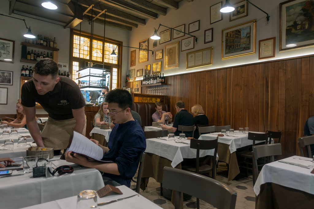 It sounds like all we did was eat, but we had dinner reservations at Armando al Pantheon. It an old family run, very popular restaurant that requires reservations. We sat at a tiny 2-person table close to an American lady. We struck a conversation. Turns out she spends 3-months a year in Rome. Her husband prefers to take travels by motorcycle; not her preference. The owner of the restaurant and staff all knew her. She was leaving Rome in a week and the owner booked one last dinner  in the restaurant before she left. What a great last night in Rome; good food & wine, good company, pleasant passeggiata in central Rome.